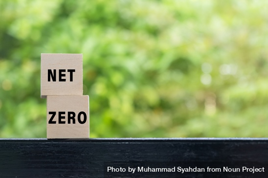 Image credited: net zero words text on wooden blocks isolated on green nature background. carbon neutral net zero emissions concept by Muhammad Syahdan from Noun Project (CC BY-NC-ND 2.0)